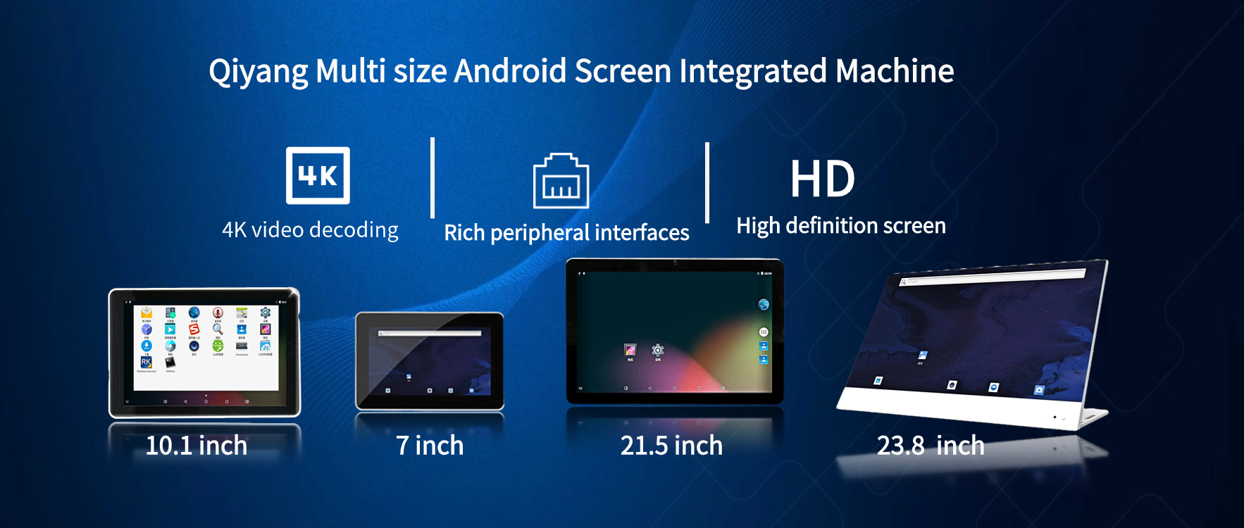Among, Qiyang 7 Inch-23.8 Inch Android All-In-One PC, the mainboard is by using RK3288 Quad-Core processor, it provides diverse sizes for selection, full-angel HD touch panel, with rich external ports, fanless design ,metal plate design, IP50 grade, Android OS, it suits for vending machine, smart medical, smart home, etc.
