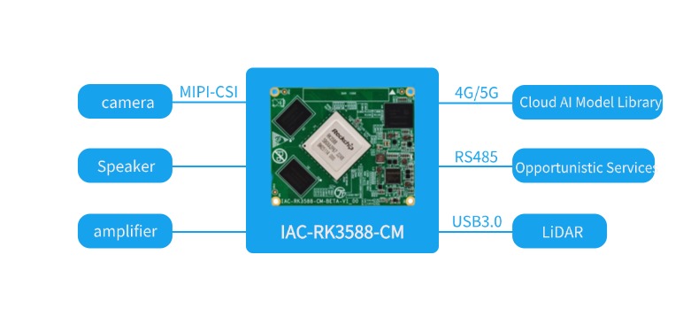 Based on the control requirements of mobile AI digital humans, the Qiyang RK3588 core module can be selected as the device’s central processing unit. The RK3588 features an octa-core high-performance processor and a 6 TOPS NPU, providing strong support for AI algorithms to meet the needs of highly realistic digital human simulation and intelligent interaction. With a wide range of onboard interfaces, it can connect to LiDAR, depth cameras, standard cameras, microphones, and other devices to enable functions such as obstacle avoidance, path planning, and environmental perception.