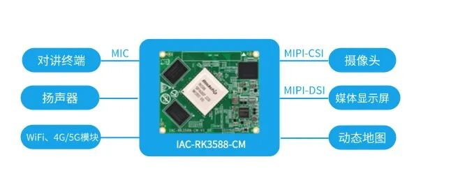Onboard with abundant interfaces, such as :MIPI_DSI, HDMI, eDP video connector, they are available to connect and driver several passenger information screen, including the compartment media screen, subway station announcement screen, etc; It supports MIPI_CSI, PCIe, USB3.0,GPIO, I2C,UART,MIC, TF card slot,etc. which are the needed connectors for the camera, intercom, data storage etc.